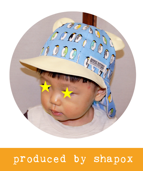 人気のクマ耳日除けCAP。柔らかいヒサシなので肌当たりも優しい。※あごひも付