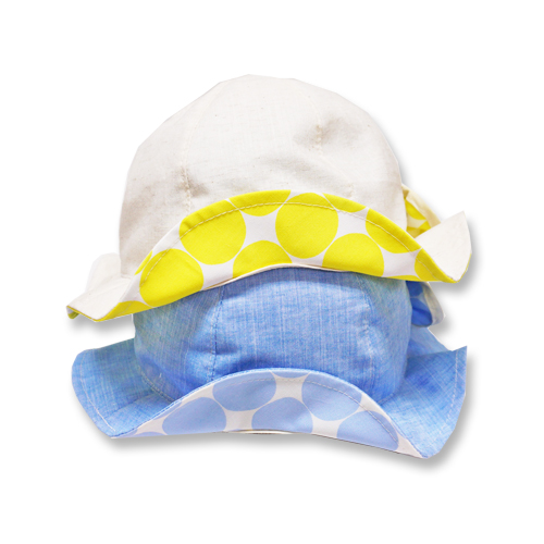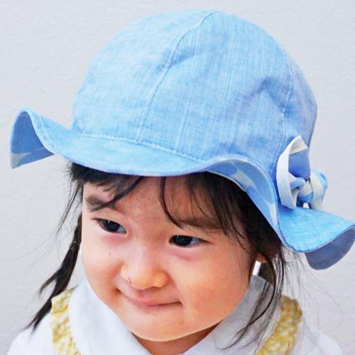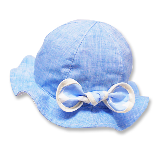 02-1010 ベビーガルボ 検索 02-1010 ベビーガルボ シャンブレー生地にポイントでドットのリボンが付いたベビーガルボ。コーデしやすく夏にはピッタリ。 UVカット あごゴム付 日本製 品番02-1010 上代¥2,900 素材表地 綿86% 麻14% ドット・裏地 綿100%